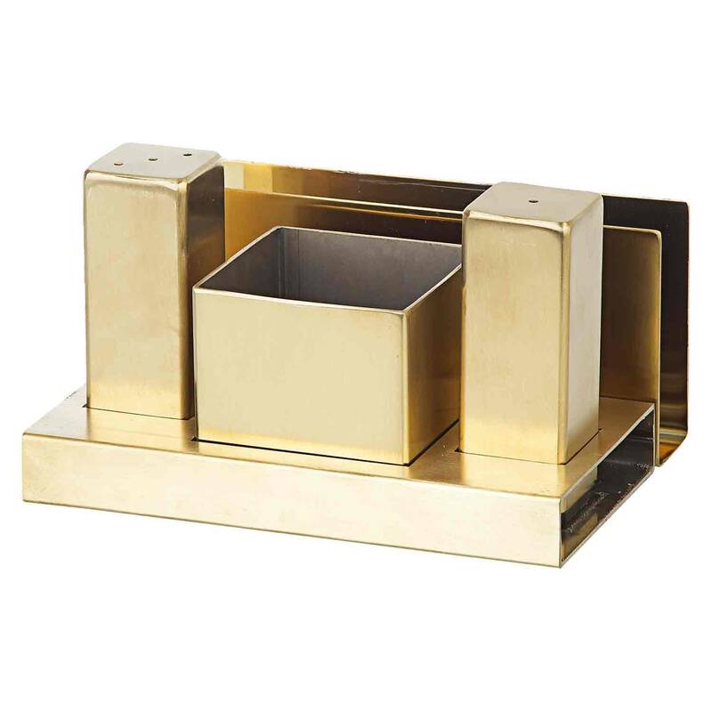 Teknik Özellik TablosuÖzellik Detay Ürün Kodu 8019.GRV-114-PA İçerik Tuzluk, Biberlik, Şekerlik, Peçetelik + Stand Malzeme 18/10 Paslanmaz Çelik, Pleksi Stand Tasarım Kare ünitelere sahip, altın ve pleksi kombinasyonu Temizlik Kolay temizlenebilir, hijyeniktir