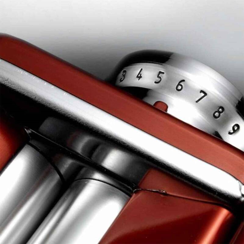 Marcato Atlas 150 Plus Erişte & Makarna Makinesi, İtalyan makarna geleneğini ev ortamına taşıyan, yüksek kalite ve estetiği bir arada sunan profesyonel bir makarna makinesidir. Canlı kırmızı rengiyle mutfağınıza güçlü ve dinamik bir görünüm kazandırırken, manuel kullanım yapısı sayesinde hamur üzerinde tam kontrol sağlar.