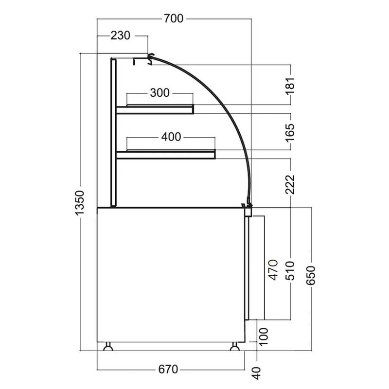 * Teşhir dolabı, R404A soğutucu gazlı, üflemeli,